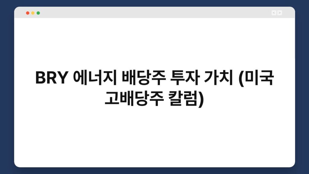 BRY 에너지 배당주 투자 가치 (미국 고배당주 칼럼)