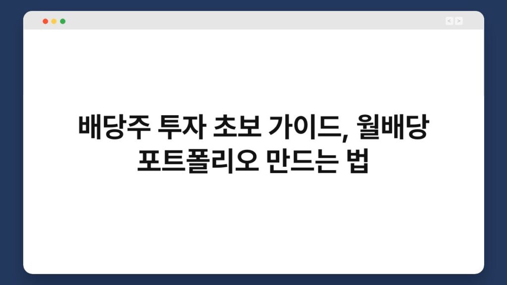 배당주 투자 초보 가이드, 월배당 포트폴리오 만드는 법