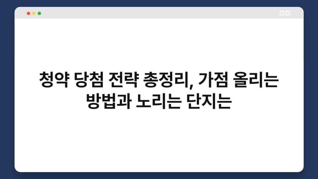 최근 내 집 마련의 꿈을 이루기 위한 청약 당첨 전략 관련 문의가 늘어나고 있습니다. 특히 복잡하게 변화하는 청약 제도 속에서 ...