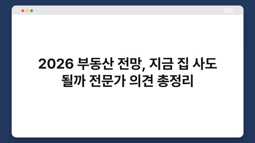 2026 부동산 전망, 지금 집 사도 될까 전문가 의견 총정리